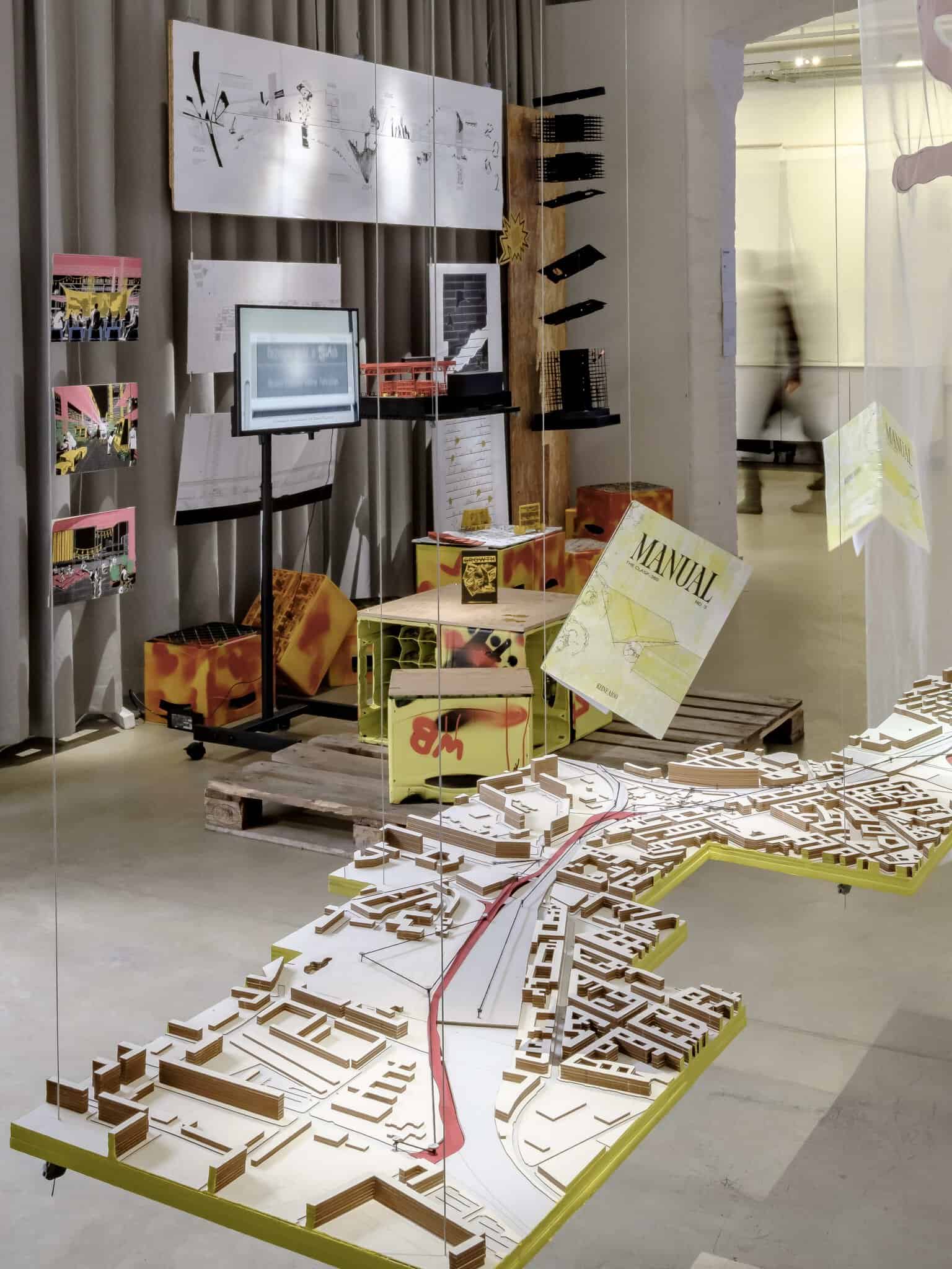 Fünf interdisziplinäre Gruppen präsentieren Visionen, verankert in konkreten Berliner Orten: Die Warschauer Brücke wird zum degrowth-orientierten urbanen Wohnzimmer. Die Alte Försterei denkt das Stadion als Raum agonistischer Demokratie. Der Westhafen entwickelt sich zu einem Stadtmodell, in dem Wasser als soziales Medium wirkt. „Das ist keine Autobahn“ verwandelt die A100 in ein gemeinschaftlich getragenes Netzwerk. Am Landwehrkanal wächst aus einem Samenkorn des Wissens ein Baum, der Orientierung nach der großen Berliner Flut gibt.