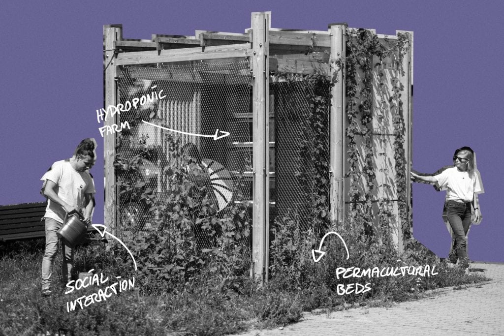 Der Raum des Urban Transition Lab – eating walls – ermöglicht dies, indem er auf der einen Hälfte eine hydroponische Indoor-Farm beherbergt, während die zweite Hälfte Raum für Menschen und die Ökosphäre bietet. Somit werden soziale Strukturen das Bindeglied, um Übergänge durch Co-Profite zu erleichtern und uns zu einer regenerativen Stadtlandschaft zu führen. Durch die Aktivitäten der Stadtbewohner*innen erreicht – eating walls – sein volles Potenzial. Die Interaktion zwischen Mensch und Natur und die Interaktion zwischen Mensch und Technik ist fast gleichzeitig möglich.