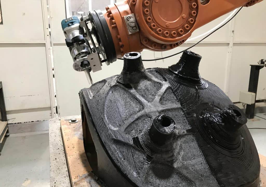 Sebastian Voigt arbeitet seit seinem Studium an der Schnittstelle von Gestaltung und Fertigung. Er verknüpft neueste Designstrategien wie Computational Design und KI mit den Potenzialen neuer robotergestützter Fertigungsverfahren, um die Einzel- und Kleinserienfertigung, fern von Massenproduktion, sowohl ökologisch als auch ökonomisch möglich zu machen und neue Freiheiten im Design und der Fertigung zu ermöglichen. In seiner Ausstellung zeigt er Prototypen dieser neuen robotergestützter Fertigungsverfahren wie beispielsweise Hybrid Manufacturing oder Incremental Sheet Forming und präsentiert unterschiedlicher Ansätze, wie wir neueste Technologien wie KI und Robotik nutzen können, um uns zukünftig in der Gestaltung und Fertigung mehr zu flexibilisieren.